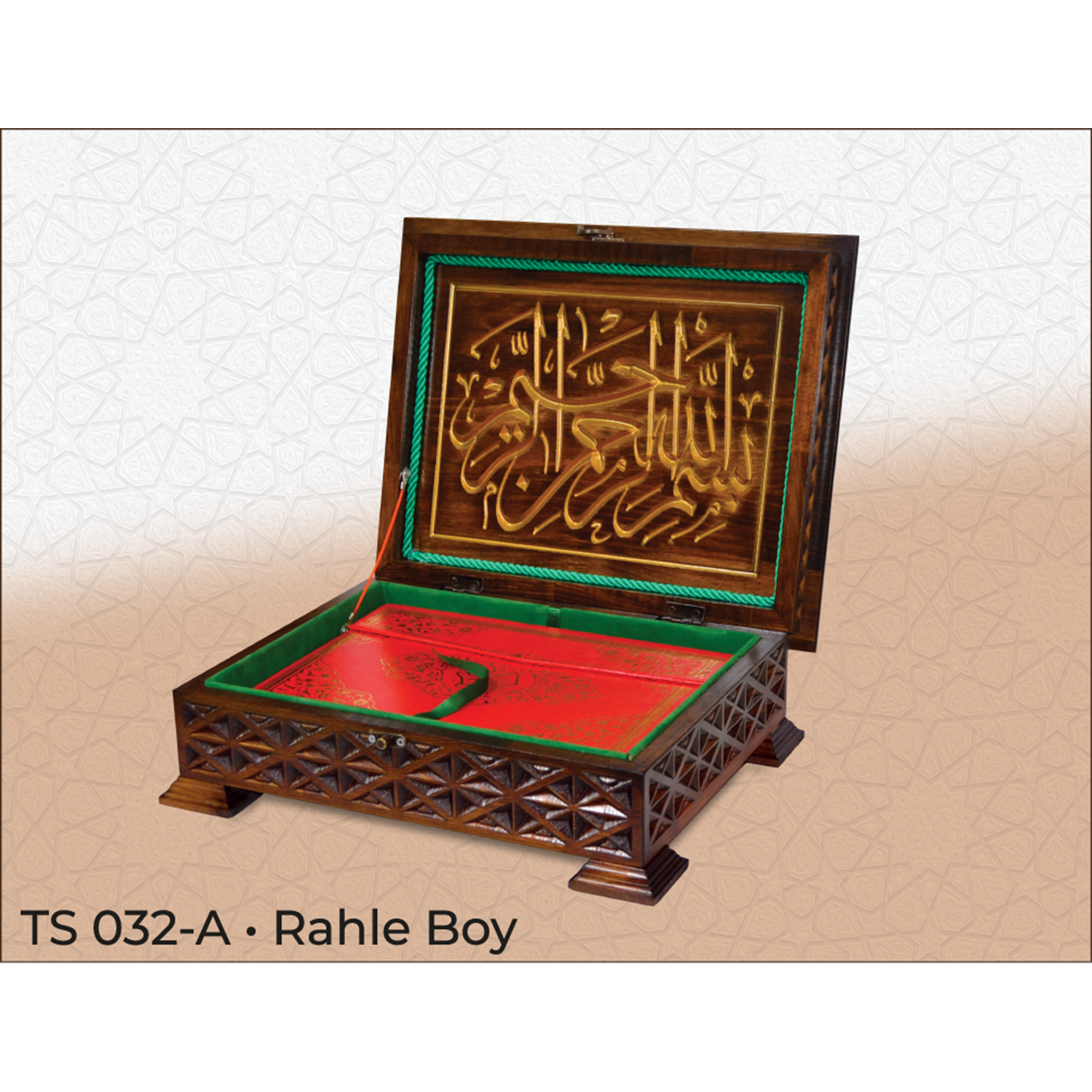 TS032-AHŞAP RAHLE BOY KURAN-I KERİM KUTUSU-OYMALI